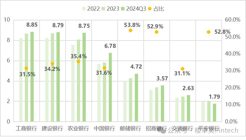 截至 2024 年 9 月底,工行公司贷款额度 17.51 与其他三大行相比,万亿元领先。 3 万亿美元,建行、农行、中行的公司贷款额在 14-15 万亿之间。