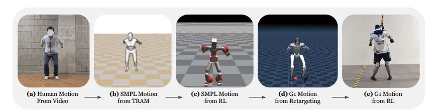 根据文章中的说法,这项技术应该首先“利用这些处理过的人类运动数据,在模拟环境中训练一个基于相位的运动跟踪策略”,然后“通过强化学习训练一个人残疾动作模型补偿模拟与现实的区别” 。