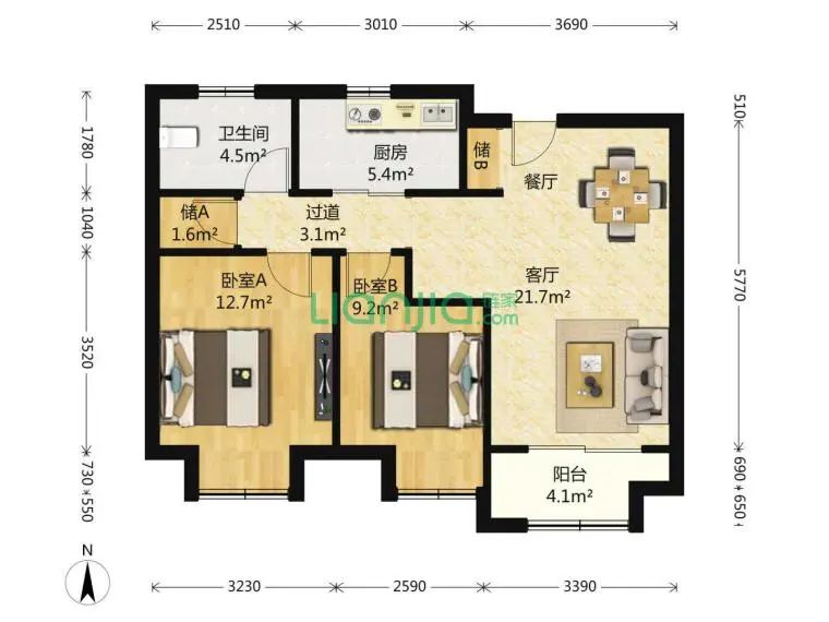 除可以放下一台对开门冰箱外,其它空间几乎没有区别。
