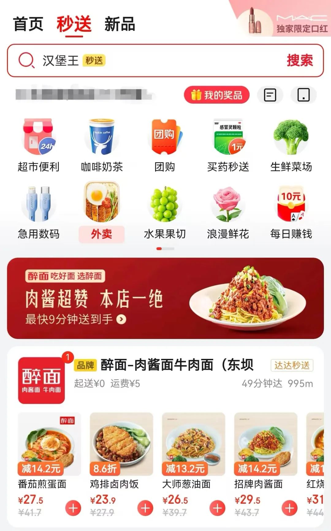 值得一提的是,JD.COM外卖的配送服务只有少数显示商家自行配送,大部分由“达达秒配送”负责配送。据了解,目前JD.COM即时零售业务由达达集团完成。配送速度是JD.COM第二次配送服务的亮点之一。JD.COM第二次配送声称可以实现最快的9分钟配送。此外,“按时保险” 服务还使用户更放心,一旦发货超时,用户就可以得到相应的补偿。