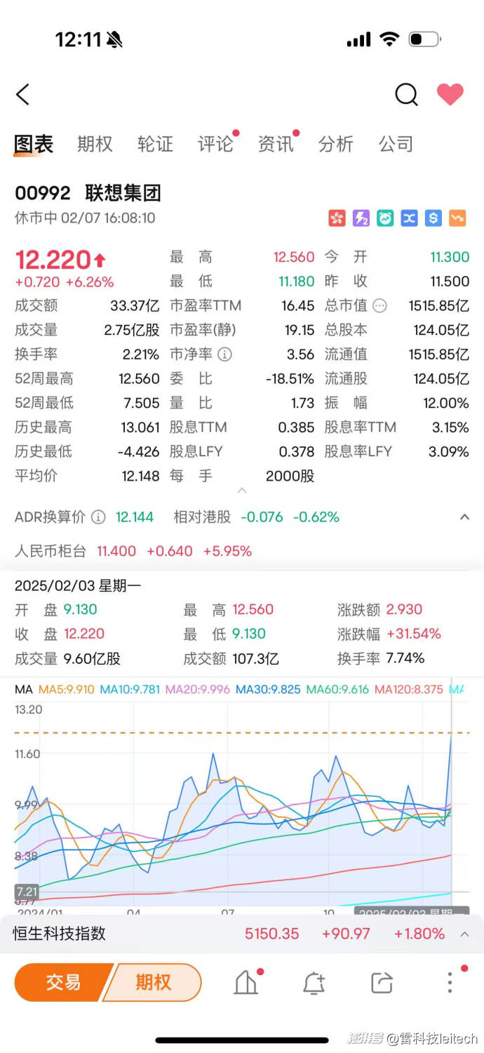 节后第一周,联想在接入DeepSeek并预测与DeepSeek“讨论更深入合作的可能性”后,股价上涨了31.53%。截至2025年2月7日,联想总市值已达1515.85亿港元,创历史新高。