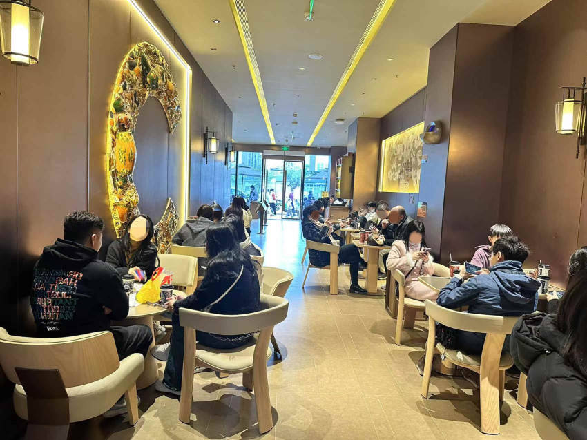 顾客小赵告诉红餐网,今年回韶关过年的时候,发现县里有很多咖啡店,一个商场一楼有十几个奶茶品牌。“几年前,我们县的茶馆很少,古茶和蜜雪都很有名。今年发现喜茶、奈雪、霸王茶姬、瑞幸等头部品牌都集中在开店上。”