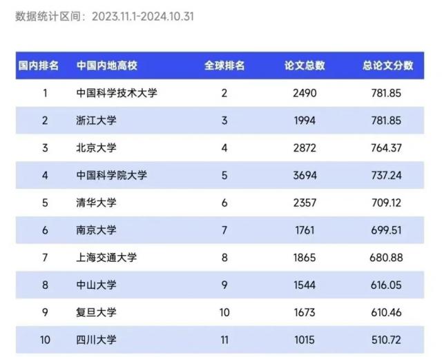 最近,自然指数官网更新了最新排名(统计时间节点为 2023.11.1-2024.10.31)。哈佛大学在最新自然指数排名中位居世界第一。 1。在中国大陆大学之前 10 分别是:中国科技大学、浙江大学、北京大学、中国科学院大学、清华大学、南京大学、上海交通大学、中山大学、复旦大学、四川大学。