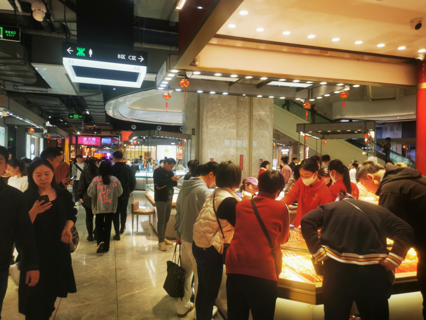 2月11日,记者实地走访深圳水贝黄金珠宝集群,了解到黄金价格再次突破新高,周大生足金999、周大福足金饰品及老庙黄金足金饰品价格均为886元/克,尽管金价持续上涨,但看金买金的顾客络绎不绝。“黄金价格上涨后,看黄金的客户数量并没有减少,最近很多00后也来买黄金。我们这边主要是零售,也有批发客户,周末会有更多的人。”上述店员说。