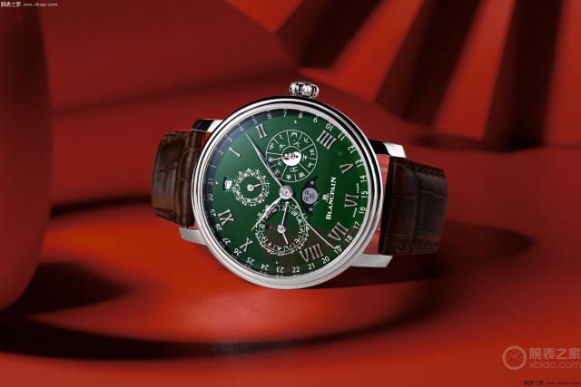 这是宝珀第一次采用铂金组合大明火珐琅绿色表盘的设计,更加低调稳重。宝珀的绿色非常可比,可以说是非常可比。 “宝珀回来不看绿色”。绿色大明火珐琅需要在几千度的高温下烧制。烧制时,温度和时长的控制非常严格。稍有差异,就会功亏一篑。凭借深厚的技术背景,宝珀烧制的表盘颜色均匀,光泽温和,表现出高贵的绿色。