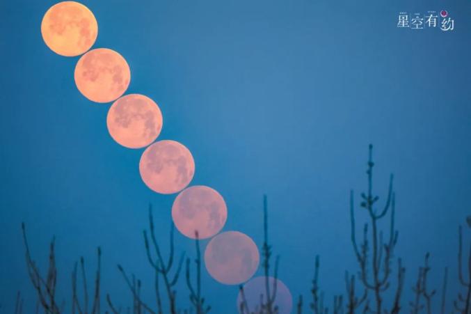 2023年2月6日在北京丰台拍摄的元宵节满月过程(多张叠加)。(王俊峰摄影,星联CSVA供图)