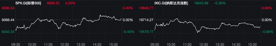 周二(11日),美国三大股指收盘涨跌不一,道指上涨0.28%,标普500指上涨0.03%,纳指下跌0.36%。