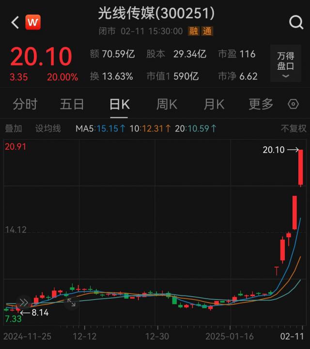 2 月 11 日光媒体再创历史新高。近 5 一个交易日,这只股票已经获得了。 3 每日涨停板,累计上涨 110.9%。