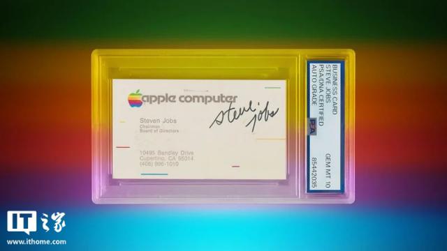 IT 世家 2 月 12 波士顿的日消息 RR 拍卖行正在举办一场备受关注的拍卖活动,拍摄一张非常罕见的苹果名片。名片上有苹果前董事长史蒂夫。・乔布斯的亲笔签名。这次拍卖将持续到 2 月 20 日。据 RR 介绍拍卖场,这张名片大概是制作出来的 1983 2008年,乔布斯担任苹果董事长。。