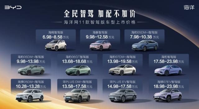 此外,比亚迪海洋网销售部总经理张卓曾表示,比亚迪将继续发挥“低成本”的优势,并希望 2-3 年内在 15 万左右甚至 15 在万以下车型中,全面实现标配比亚迪自研自销的智能驾驶系统。