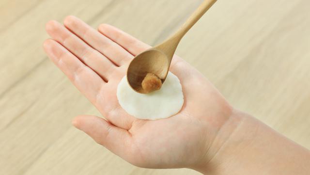 在手心舀一勺山药泥,用手搓圆,挤压,