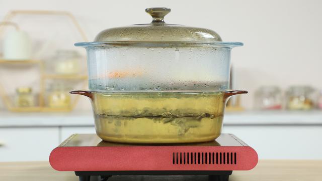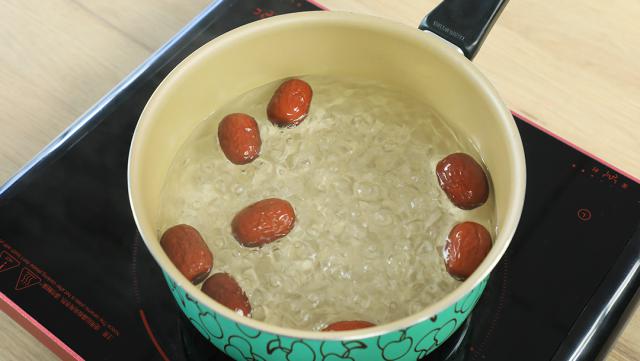 奶锅里的水沸腾后倒入大枣,大火煮沸。 10 分钟,