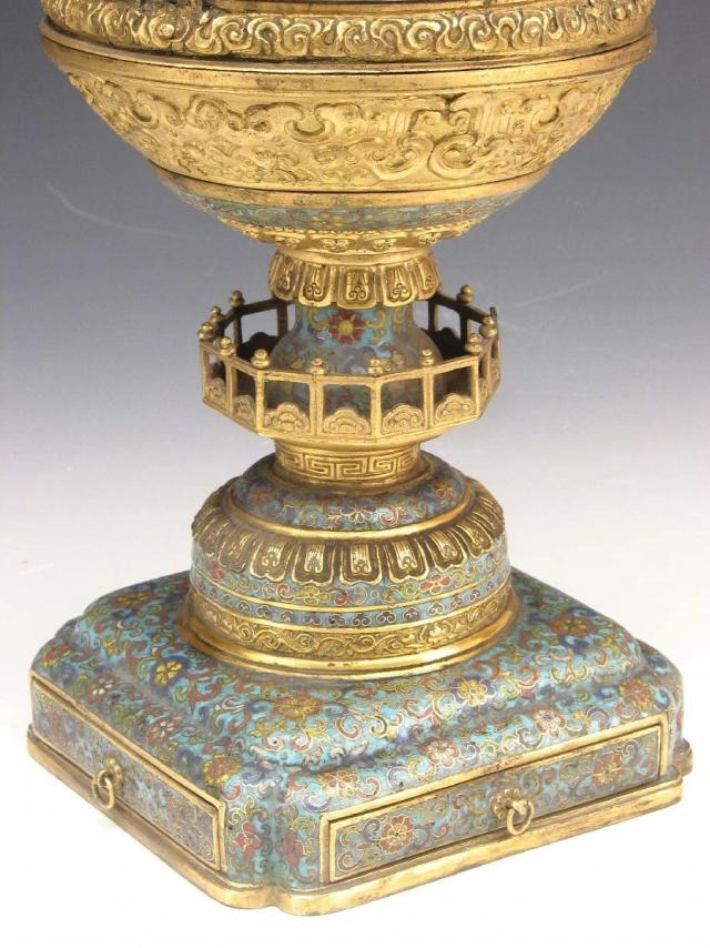 兼有镀金、雕刻和掐丝珐琅。