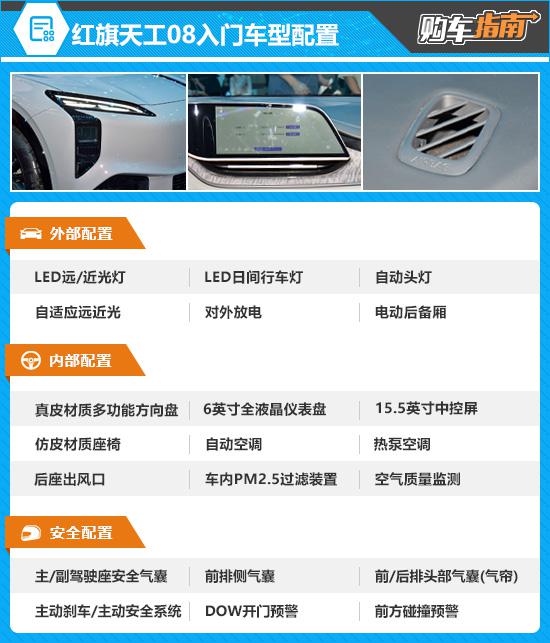 2025 年 1 月 7 天,红旗天工 08 长春正式上市,官方售价区间为 23.98-33.98 一万元。与此同时,官方还推出了新年红包礼品、新尊享礼品、0 息轻松礼等 8 重新上市权益(详情请咨询当地经销商)。