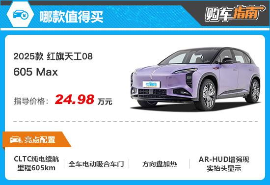 所以,对红旗天工来说 08 消费建议,重点推荐参考价格为 24.98 万元的 消费者在购买时可以优先选择605Max。