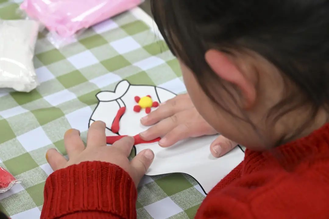 活动期间,孩子们在彩色纸条编织的笔记上写下了对家人、朋友和自己的祝福,在亲手制作粘土旗袍的过程中感受到了东方美学的独特魅力。