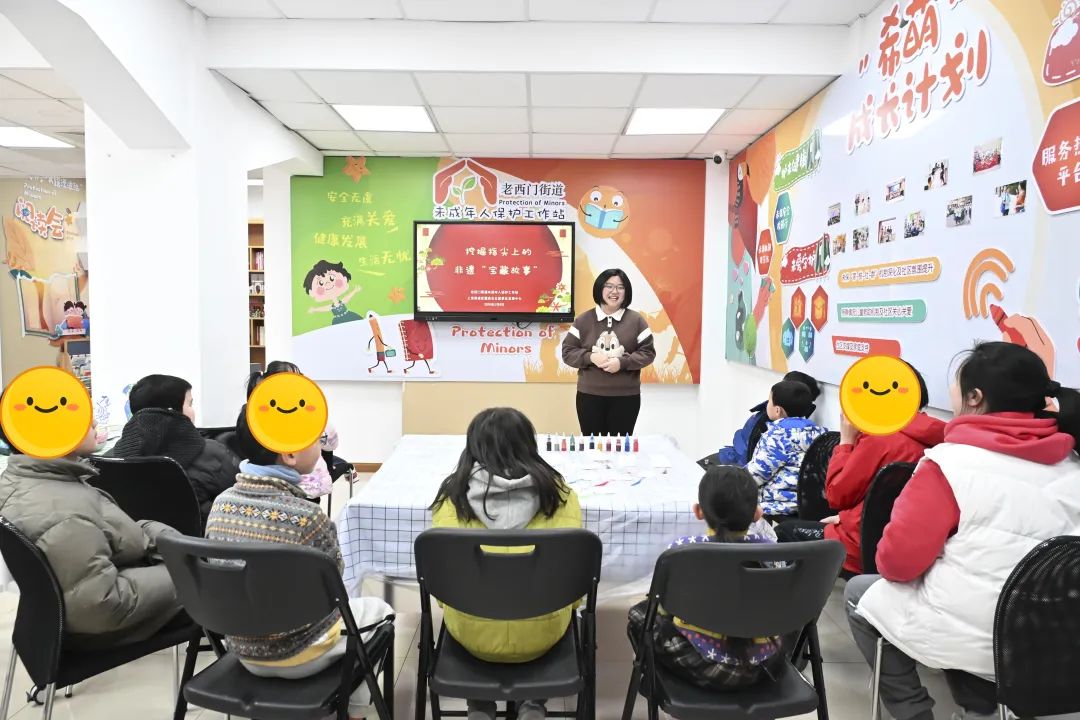 元宵节前,老西门街道无保站举办了一场以“发现指尖上的非物质文化遗产故事”为主题的活动。活动增强了当地学校与部分居民区儿童的距离。同时,“希萌海豚”也融入了家门口的社区,一起感受传统文化的魅力。