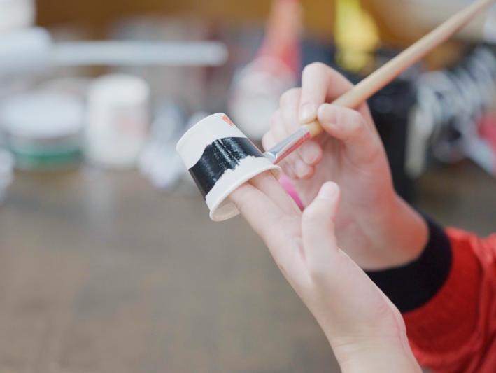 1. 用颜料在纸杯上画出锦鲤鱼的头形。