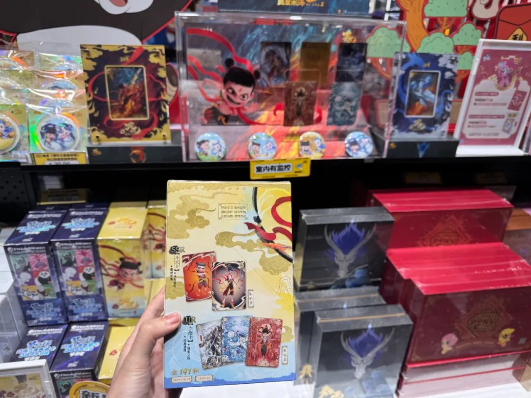 周末,“天下网商”走访了位于杭州的卡牌品牌“卡游”线下门店。哪吒2的卡片和周边地区被放在商店最显眼的位置。