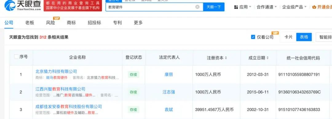 有300多家公司使用天眼查APP搜索教育硬件,搜索大型高新技术企业。这些企业中有相当一部分从事B端和G端业务。