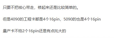 虽然这里没有 RTX 5090 的样卡,但有一种说法是,它也用了四个。 16 针。