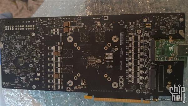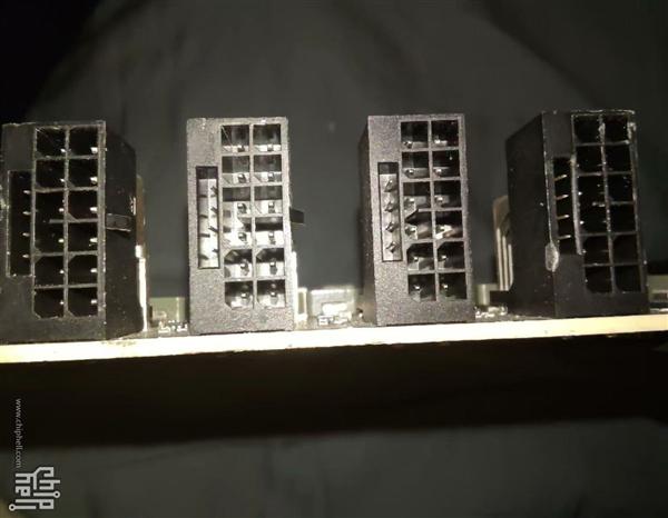 虽然他们都没有 GPU 芯片,但是存储颗粒和各种组件都存在,堆放极其残忍,还有各种测点、跳针、按钮等。用于测试,供电接口也是完整而疯狂的。