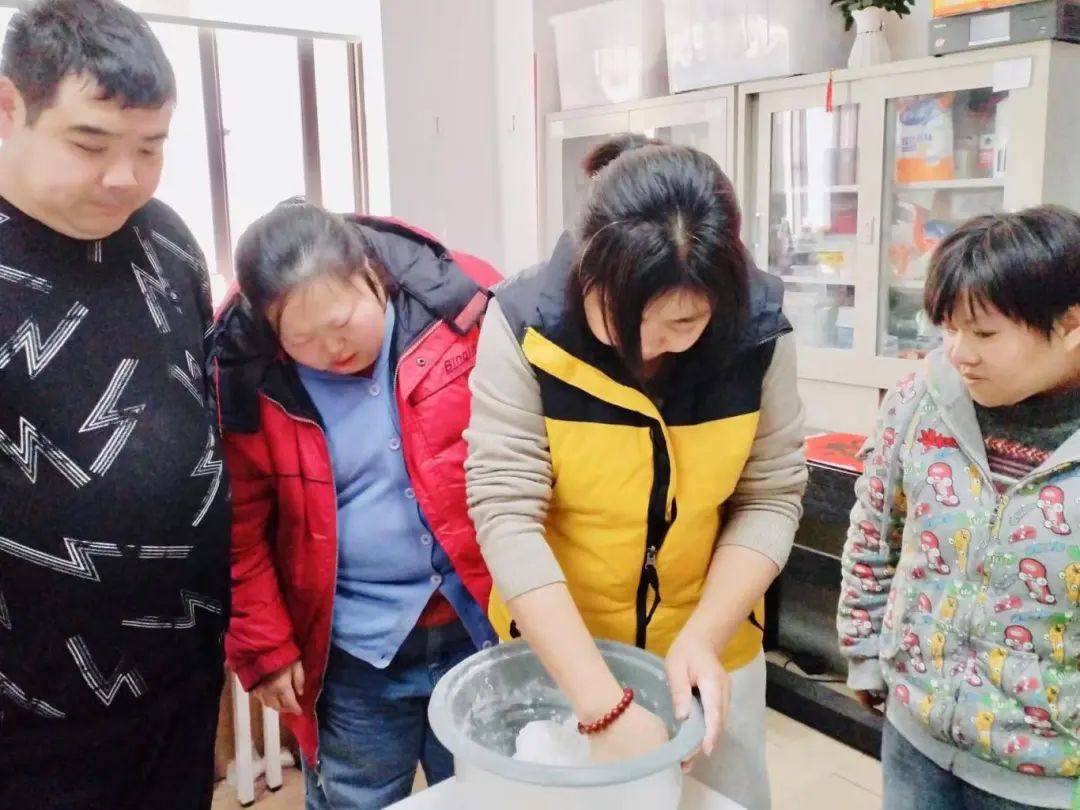 另一方面,四川北路街道阳光之家的饺子品尝区也很热闹。志愿者们把煮好的饺子放在碗里,一碗一碗地递给学生。热气腾腾的饺子,咬一口,软糯香甜地散在舌尖上。同学们一边品尝,一边分享生活中的一些有趣的事情,一边和朋友一起感受节日的温暖和喜悦。