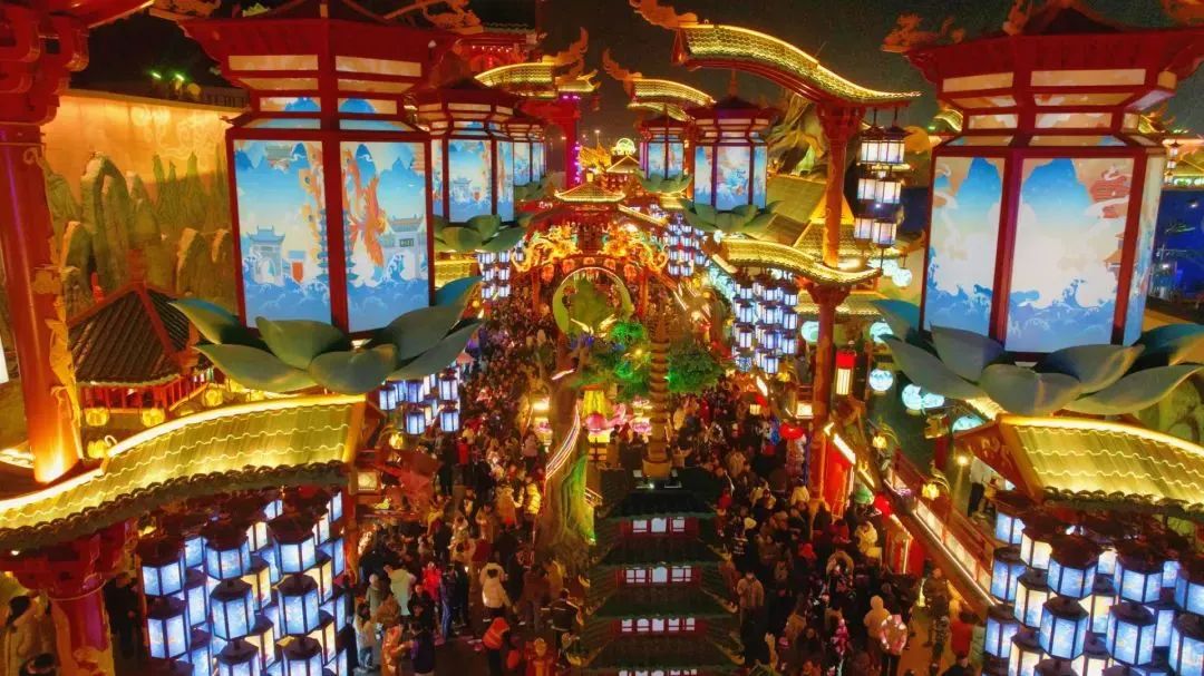 《国风西海》灯会依托沉浸式声光电、影视级造景等前沿技术和艺术表现形式,打造沉浸式东方文化园会,共六大主题。