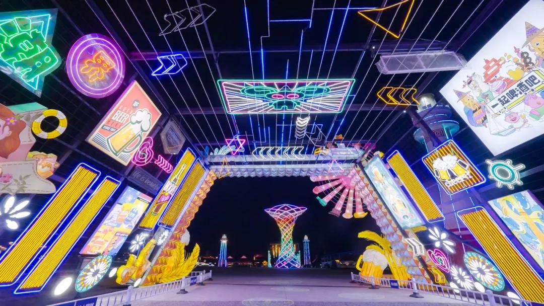 金沙滩啤酒城设置了各种主题灯笼,营造出浓厚的新年氛围;儿童游乐区有十多个游乐项目,让家长和孩子一起玩耍放松;美食市场聚集了各种网络名人美食,享受舌尖美食。