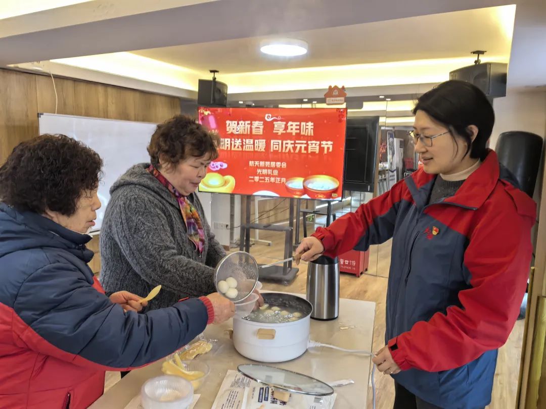 现场,企业员工与居委会工作人员密切配合。有的人负责煮饺子和馄饨,有的人小心翼翼地把煮好的食物放在饭盒里。当一碗碗热气腾腾的饺子递给居民时,每个人都迫不及待地品尝它们。软糯香甜的饺子不仅满足了味蕾的享受,也温暖了心。七十多岁的吴阿姨品尝后更是赞叹不已:“这汤圆真好吃,甜到我心里!”整个活动室充满了温馨的气氛,欢声笑语此起彼伏。