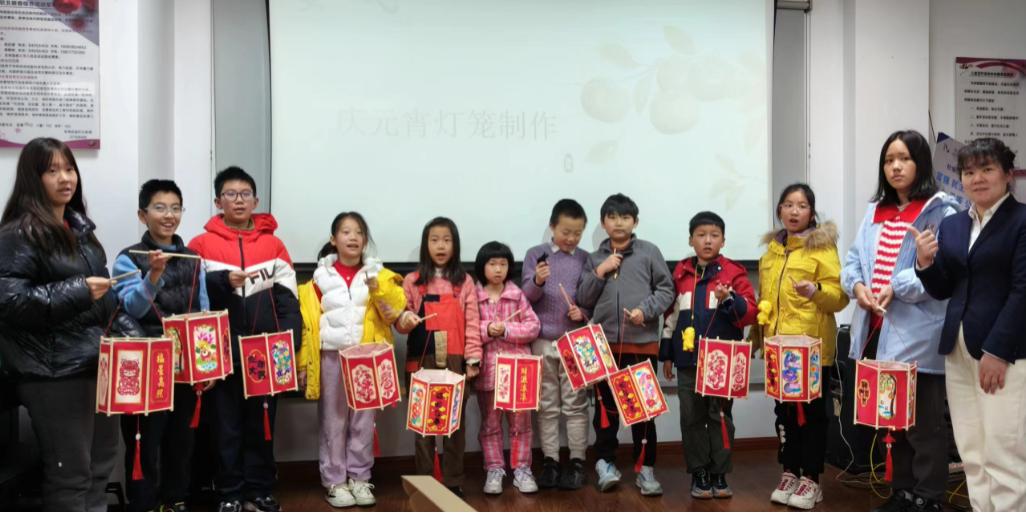 同时,在虹梅街道的另一边,钦北居民区与农村商业银行水河泾开发支行联合邀请社区青少年参加“庆元宵灯笼制作”活动。