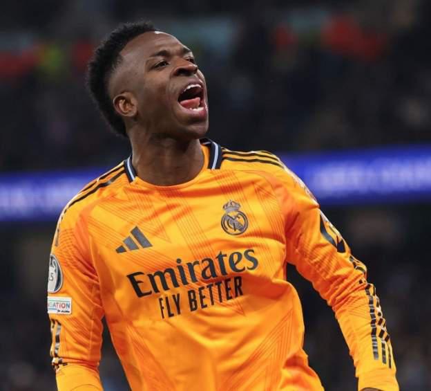 韦尼修斯皇马进球 MVP,手指着" 15(代表皇马 15 冠军杯)"反击曼城球迷 …… 在这个欧冠之夜,韦尼修斯赢了,这是最愉快的赢球方式。他完成了三次反击——球队逆转进球,取得了最好的成绩。 15 欧冠球迷面对曼城球迷。