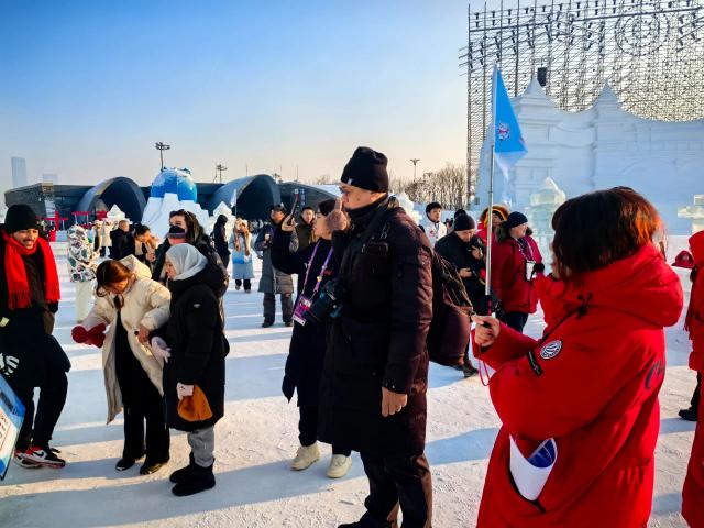 10 日,中外媒体记者通过“建筑大观” · 主题线“欧陆风韵”来到冰雪新天地。包含 Adilbish Jargalsaikhan 在内的 4 一位著名的蒙古国记者,一看到家乡选手在冰雪新天地举办的冰雕比赛中雕刻的获奖作品《传奇的旋律》,就赶紧上前拍照留念。他告诉记者,通过对哈尔滨亚冬俱乐部“城市侧”的采访,他进入了世界著名的冰雪新天地景区。“我们在现场看到了家乡地标建筑的冰雕造型,与家乡玩家的创意冰雕艺术作品非常亲切!与此同时,也进一步体会到了哈尔滨冰雕的国际水平和浓厚迷人的文化底蕴,从而对哈尔滨和黑龙江有了更深的了解。"