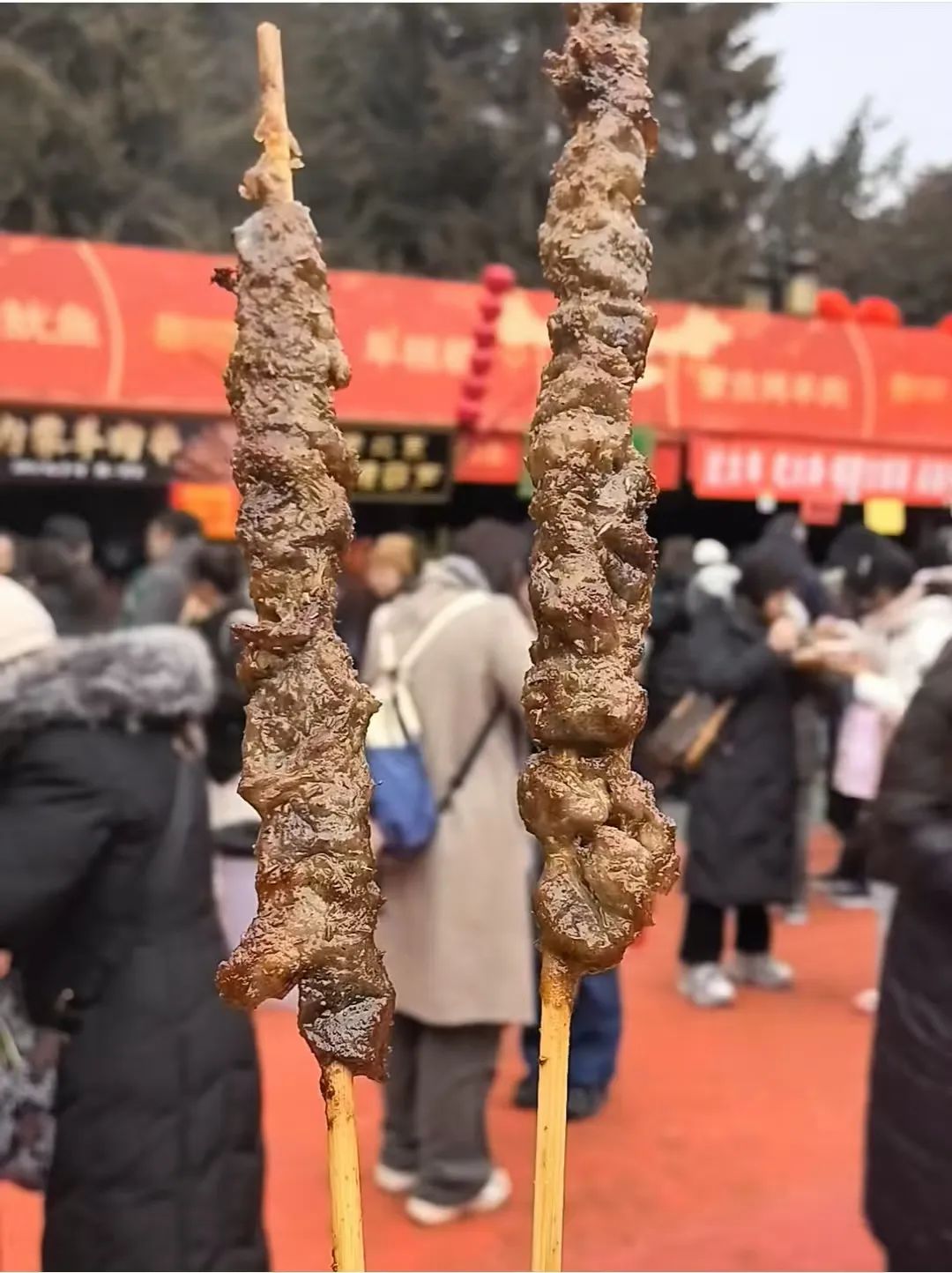 如果你不穿鹅,你就不会闲着。一进市场,就是一排热腾腾的烧烤,全国统一的肉蛋堡,北方特色的大饼卷肉。咸的腻了甜的也不甘落后。梨汤、拿铁、糖葫芦,嘴里和手里总有一个忙。