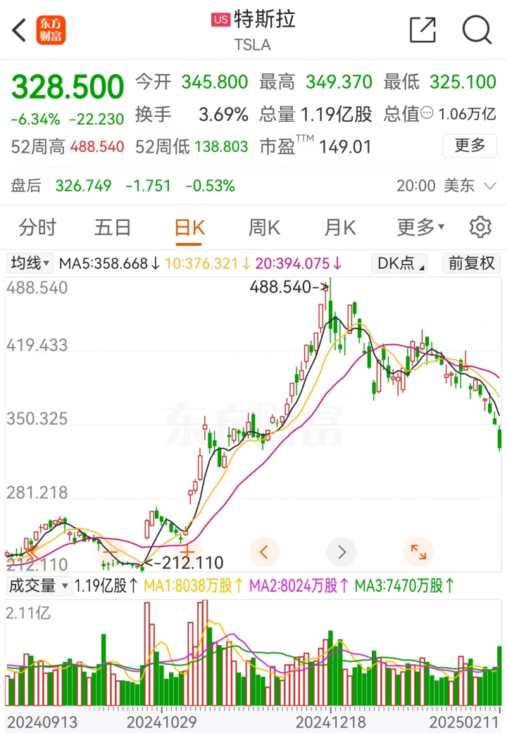 目前,马斯克正深入参与美国政治,但特斯拉的股价有点不可抗拒。当地时间周二,特斯拉股价暴跌6%以上,单日市值蒸发700多亿美元。中国知名汽车品牌比亚迪在智能驾驶领域发布的“招式”被市场视为特斯拉暴跌的导火索。