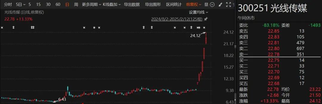 光传媒作为发行商的业绩预测也是一涨再涨。2月5日,光传媒宣布,截至2025年2月4日,该公司的营业收入范围约为9.5亿-10.1亿元,来自哪吒2。