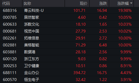 DeepSeek概念股持续上涨,青云科技-U、浙江数字文化、视觉中国等多只股票继续涨停。