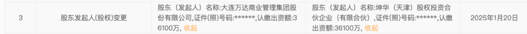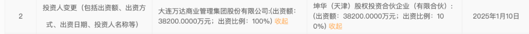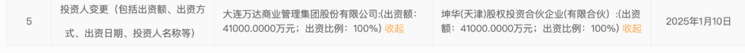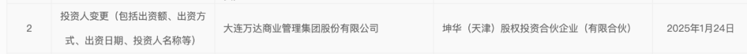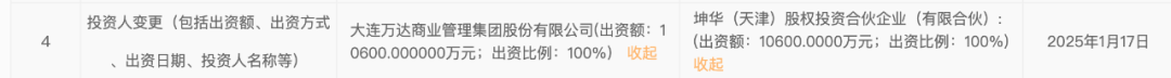 近日,工商信息网显示两条股东变更信息,原股东大连万达商业管理撤出,坤华股权投资成为扬州万达商业广场四平万达广场投资全资股东。