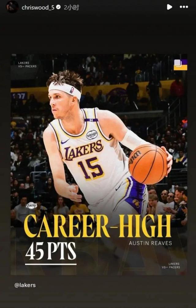 在今年“不打球”的时候,伍德其实表现得很好。即使他不能出场,他也会以各种方式团结队友。比如有媒体编辑詹姆斯的亮点时刻,他会迅速分享,全力吹嘘。比如前几天里夫斯在个人职业生涯中创下新高,伍德迅速发文致敬。