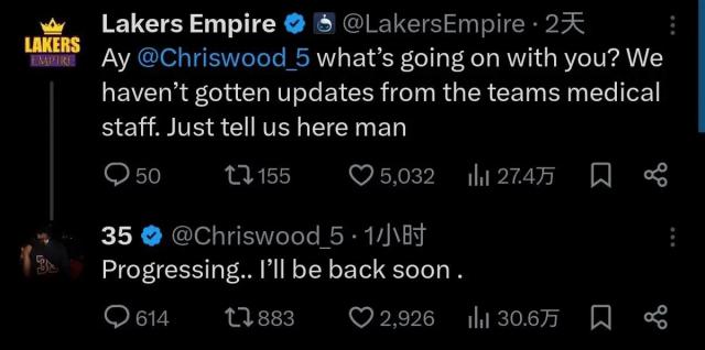 即使在伍德被裁掉的前一个小时,他也主动在社交媒体上回复网友:“时间表已经提上,我很快就会回来。”虽然有些遗憾,但也是无奈之举。目前,买断市场已经大开。湖人急需腾出空间签下莱恩。