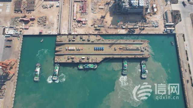 青岛武船麦克德莫特港口是独一无二的 U 港口结构,空间极其狭小。"海洋石油 229 "驳船体型庞大,船长 215 米,型宽 65 米,目前世界第三,亚洲最大的无动力甲板驳船,这对航海工作来说无疑是一个很大的挑战。