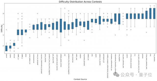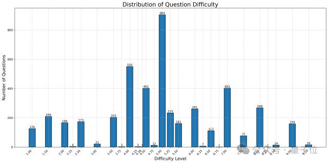 具体而言,不同级别的比赛难度有本质的差异,例如, CEMC 和 IMO 题目之间的差别特别大,但是,每一场比赛的不同题目也有所不同,比如一次一次。 IMO 这场比赛既有简单的问题,也有难题。所以评价集的难度分类严格按照 AoPS 每个问题在网站上给出的不同比赛的难度系数(从 1 到 10 大部分是整数,少数是整数, .5、.25 这个难度)。