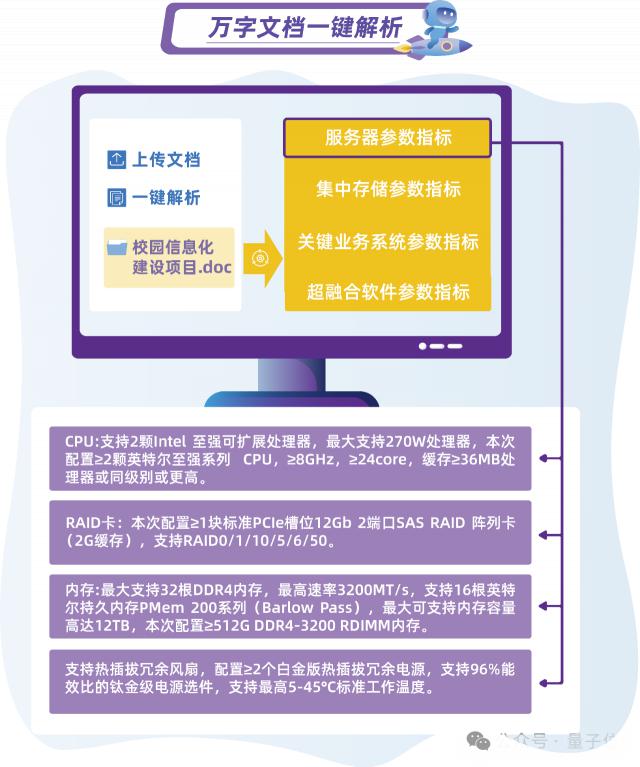 根据项目要求,“元小智”能有效识别数万字、数百页的招标文件,达到招标重要信息的识别准确率 秒级提取客户核心需求85%。
