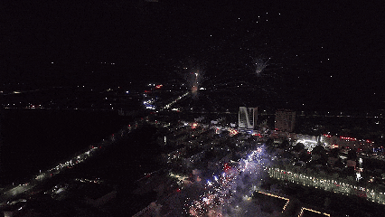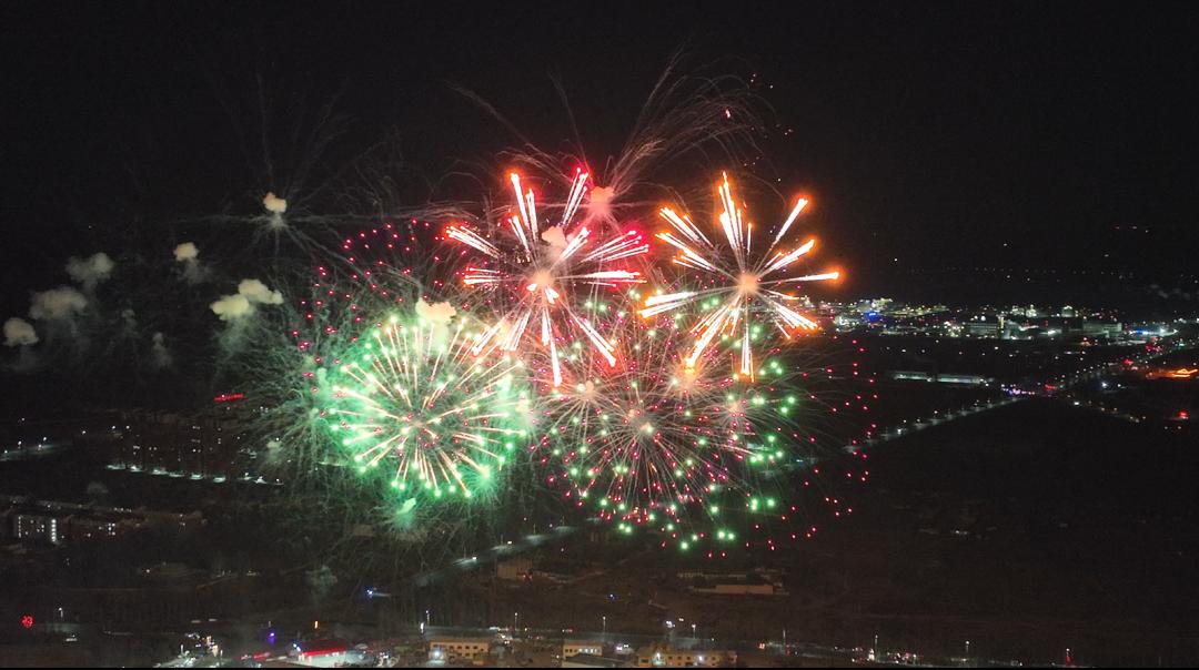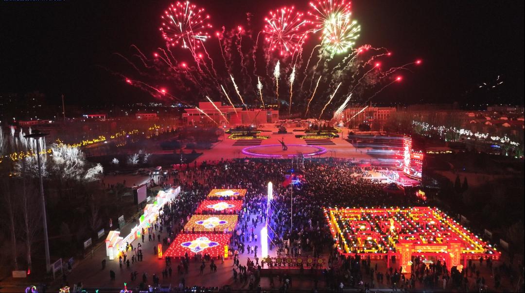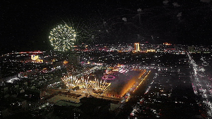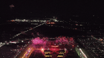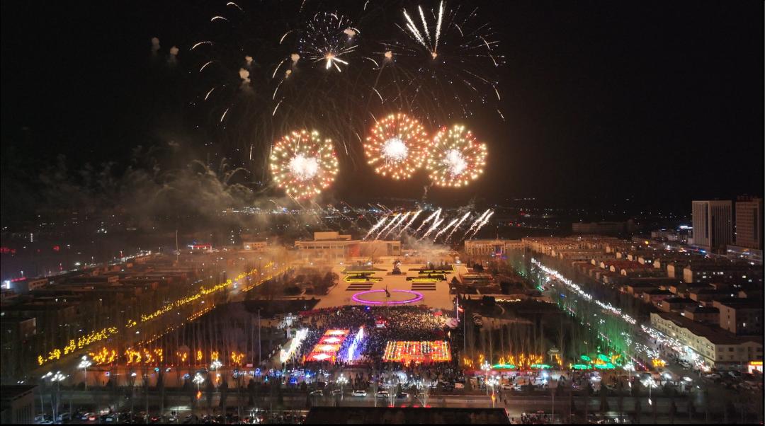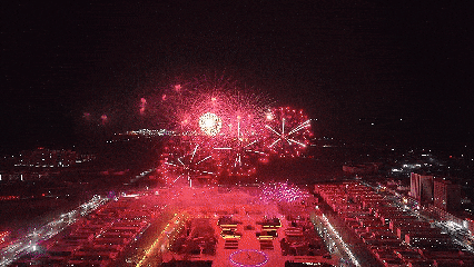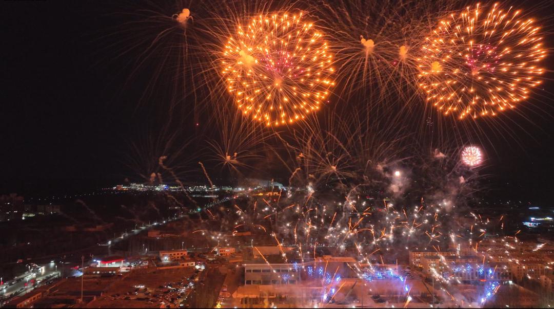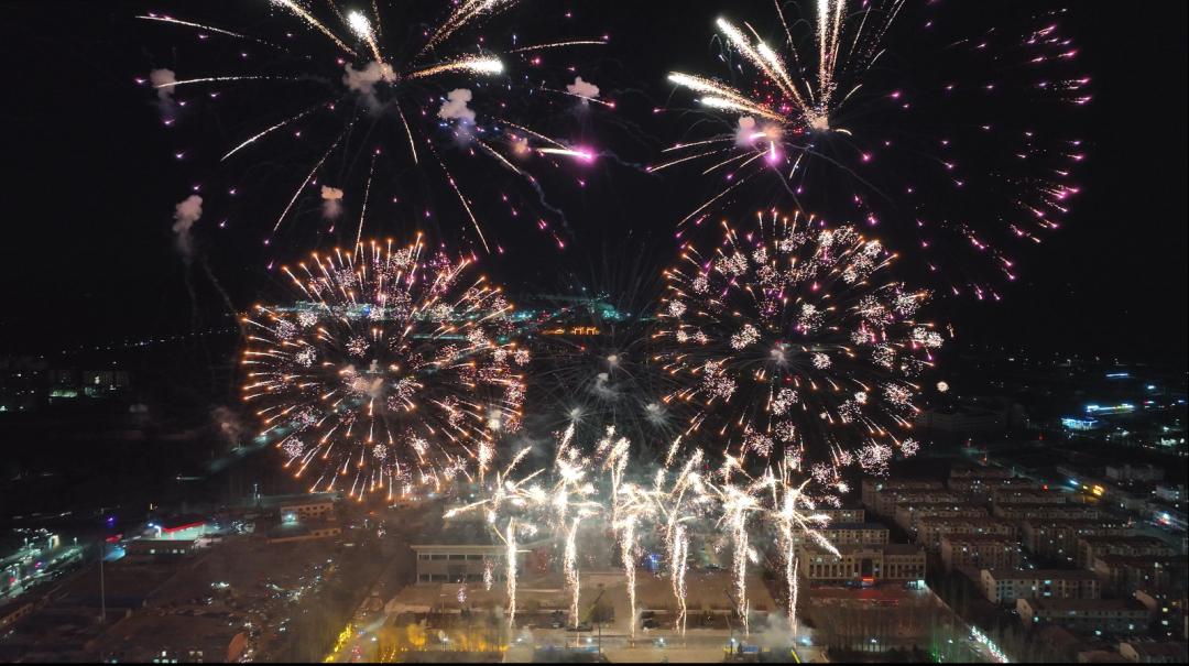 杭锦的上空瞬间被绚丽的烟花点亮。