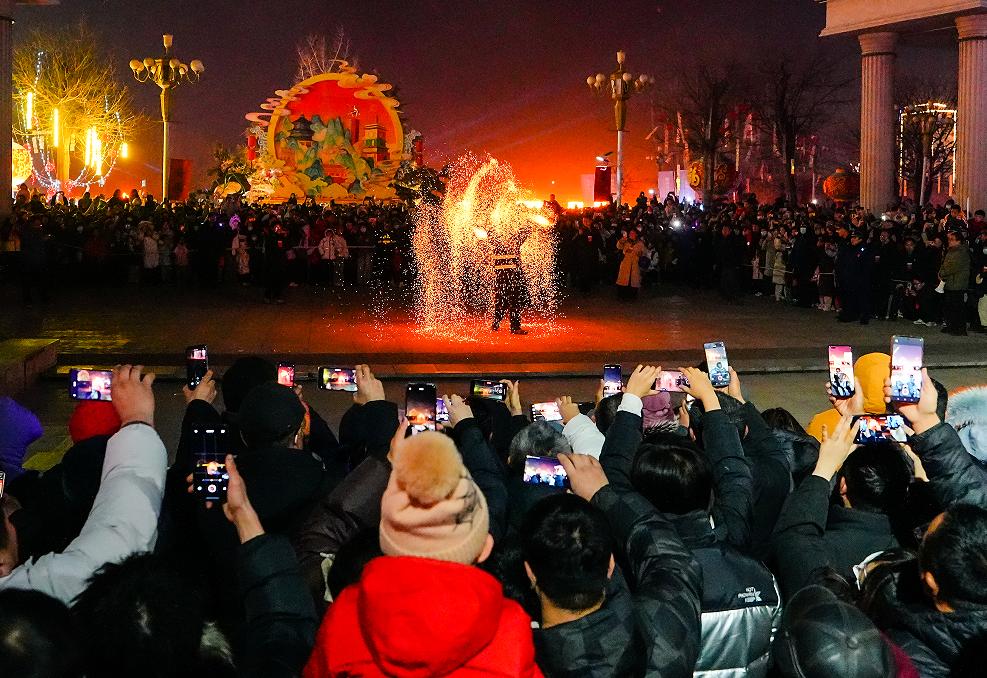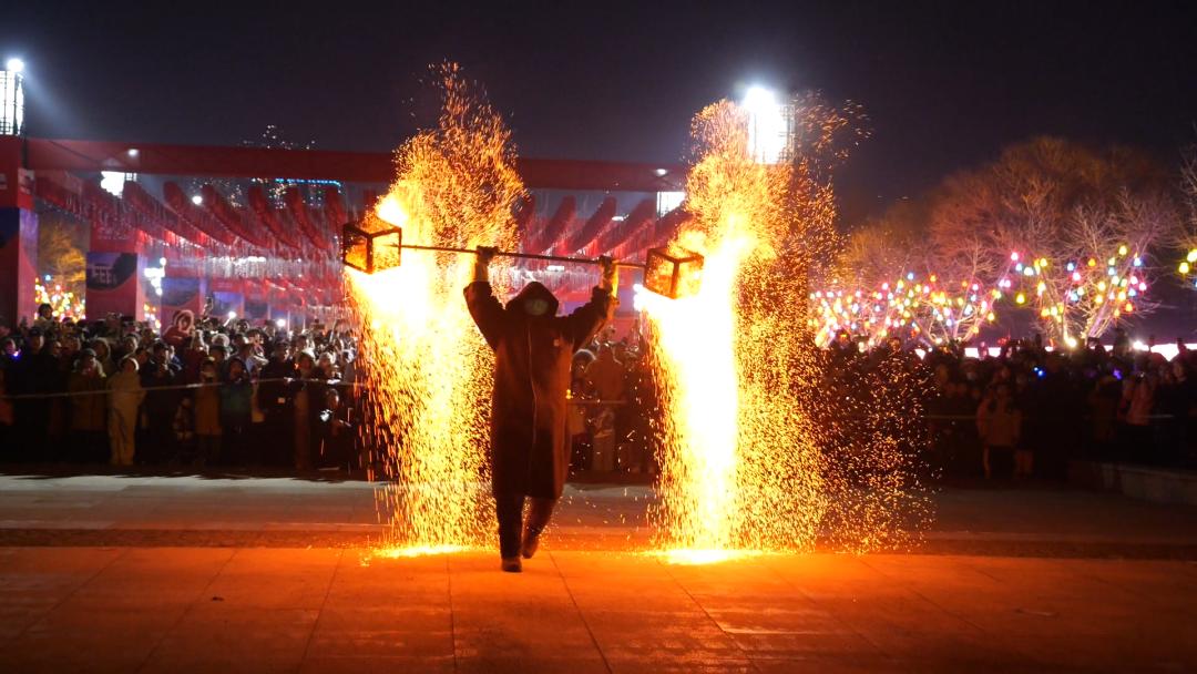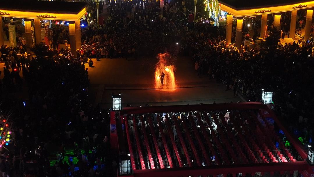 另一方面,火锅表演将整个灯会气氛推向了高潮。表演者手里拿着火锅,上下飞舞,火焰在空中飞舞。火和锅的影子相得益彰,呈现出火树银花般的景象,给观众带来惊心动魄的视觉体验。在欣赏这种古老技艺非凡魅力的同时,他们拿出手机固定了震撼的瞬间。