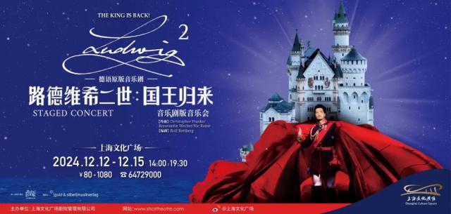 正版德语音乐剧《路德维希二世:国王归来》讲述了“童话国王” "生活,自我 2016 从2008年开始,德国富森新天鹅堡音乐剧院一直在演出, 这是近年来德国最著名的原创音乐剧。12 月 12 日本,《路德维希二世:国王归来》将以音乐剧版音乐会的形式开启中国首秀。只有上海一站,原版卡司和史无前例的音乐会。 65 大乐队编制了一个令人惊叹的亮相,向大家展示了路德维希一生丰富而宏大的故事。