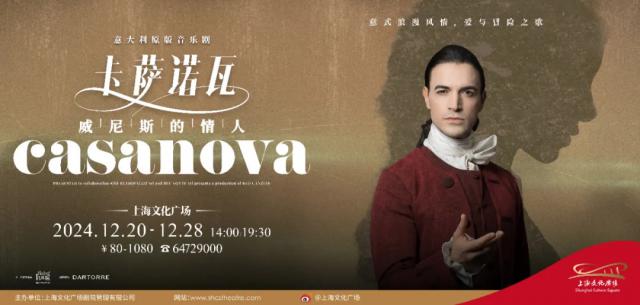 正版意大利音乐剧《卡萨诺瓦-威尼斯的情人》将在 12 月 20 由意大利传奇乐队正式登陆上海 POOH 作曲家兼贝斯手莱德 · 创作和制作坎齐安,描述探险家贾科莫 · 动人的卡萨诺瓦体验,将意式浪漫移植到上海舞台。上海文化广场首次引进意大利语音乐剧,多年来“为观众选择大戏”的国际版图再次扩大。
