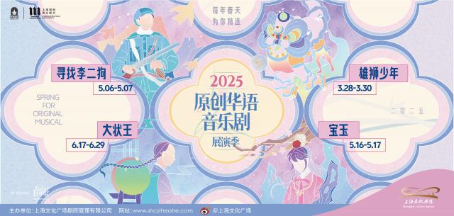 " 2025 原创华语音乐剧表演季将为观众带来四部原创作品,分别是《狮子少年》、《寻找李二狗》、《宝玉》和《大王》,这些作品都扎根于中国本土文化,充分展现了华流之美。