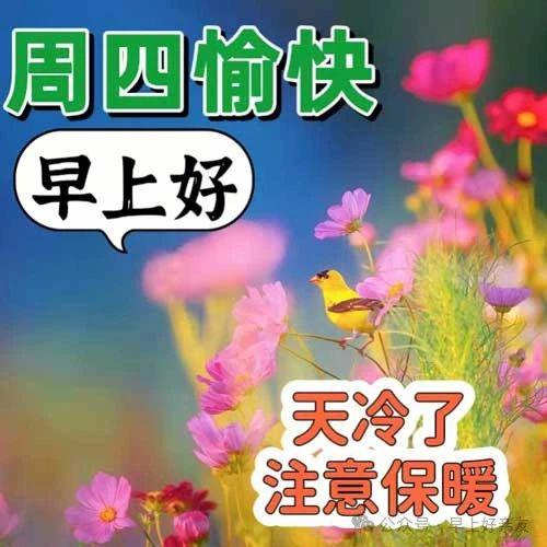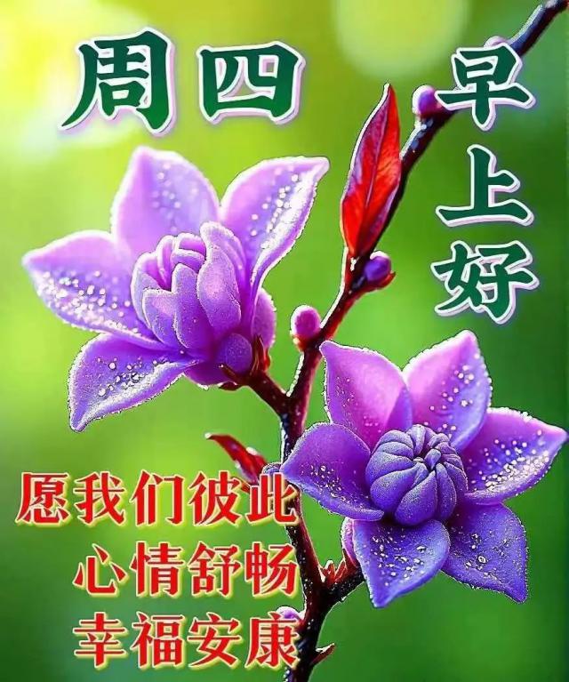 问候是桃花的温柔,问候是夏天的梦想,问候是收获的甜蜜,问候冬雪的友谊。每天心情都很好,每天天气都很好,月圆月缺都是画,花开花落都是诗。周四早上好,吉祥!