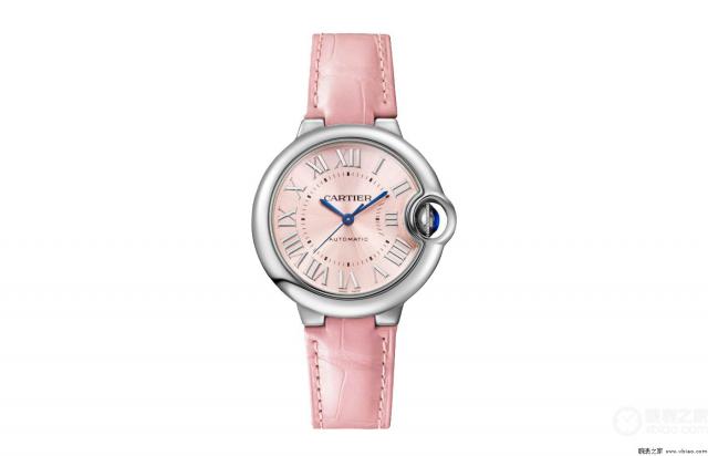 手表评价:卡地亚蓝气球在众多女士表中的知名度和受欢迎程度可谓名列前茅。我曾经问过为什么身边买了蓝色气球的女生喜欢这块表,“我分不清自己喜欢哪一点,每一点都喜欢”,这大概就是真爱吧!这款蓝色气球手表采用精钢材质,表壳直径圆润。 33 mm。“蓝色气球”最独特的地方就是将精刚凹槽表嵌入一个凸圆形,形成一个蓝色尖晶石。在粉红色的阳光线线表盘上,罗马字母时标组合剑形蓝钢指针。与表盘相配的是一条粉红色的鳄鱼皮表带,蓝色的气球变成了“粉红色的气球”,增添了甜美的气质,非常适合情人节的浪漫气氛!卡地亚18533用于手表内部 机芯型自动机械机芯(机芯的命名来源于卡地亚造表单位的成立年份),约为 37 动力储存小时。